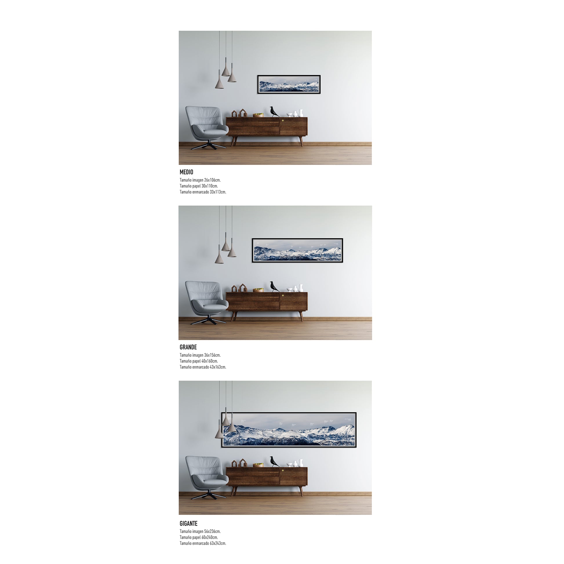 • Gigante — Tamaño imagen 56x236cm; Tamaño papel 60x240cm; Tamaño enmarcado 63x243cm