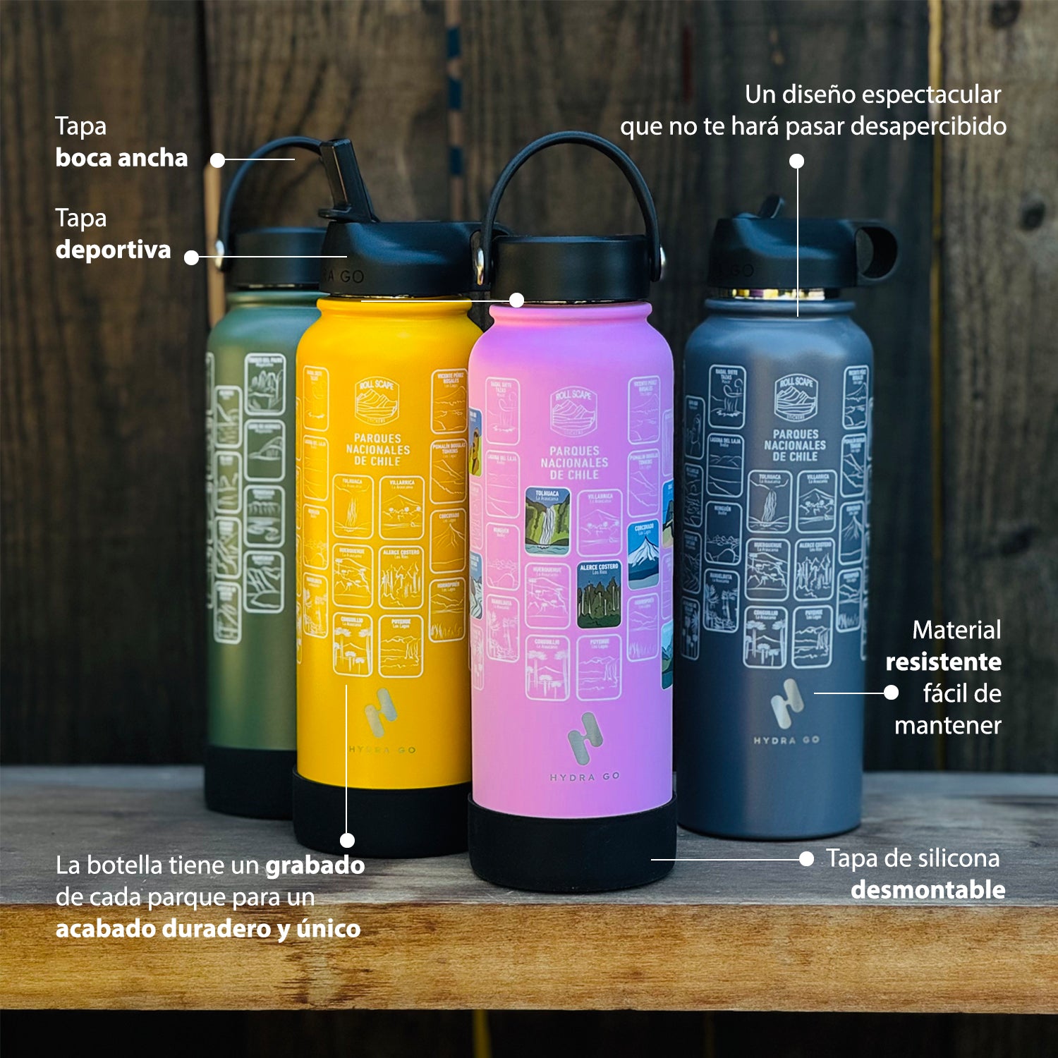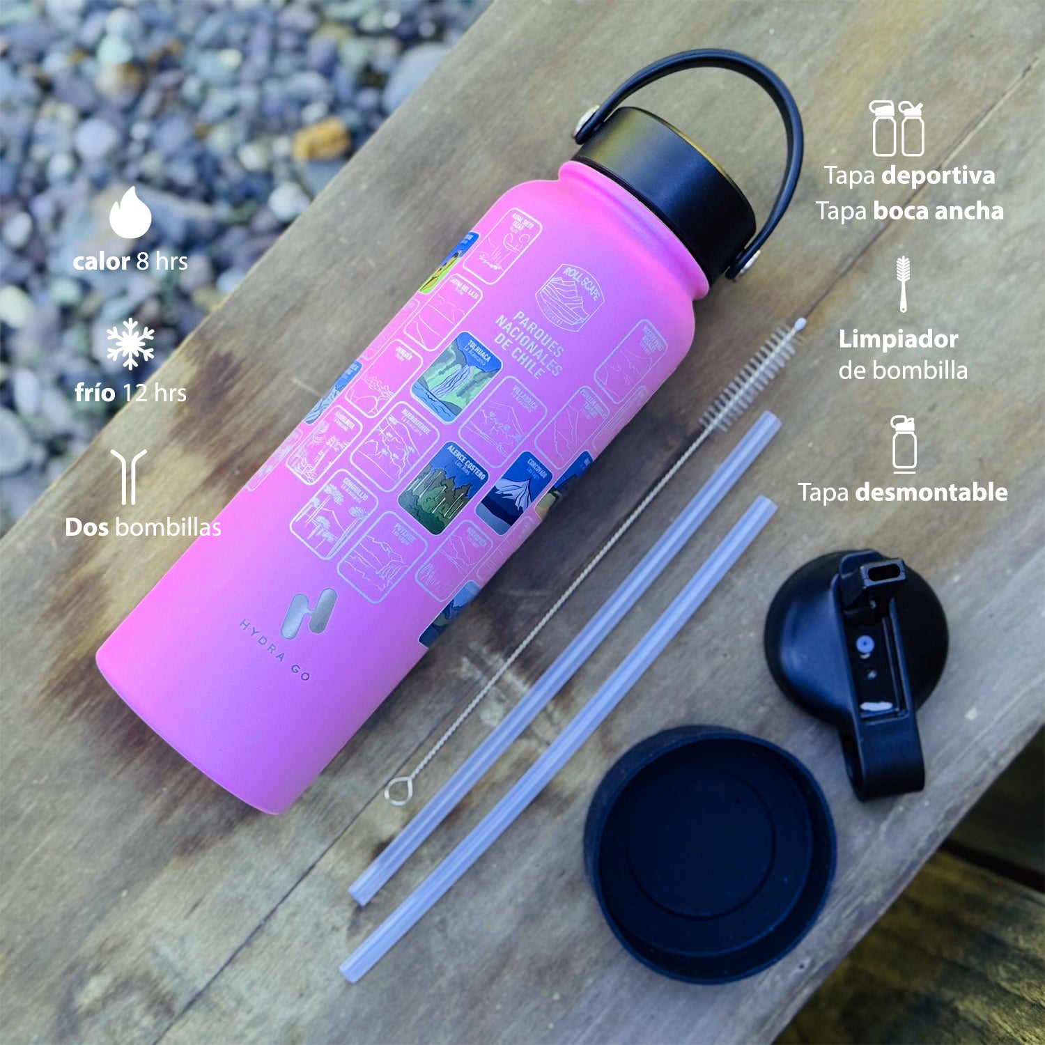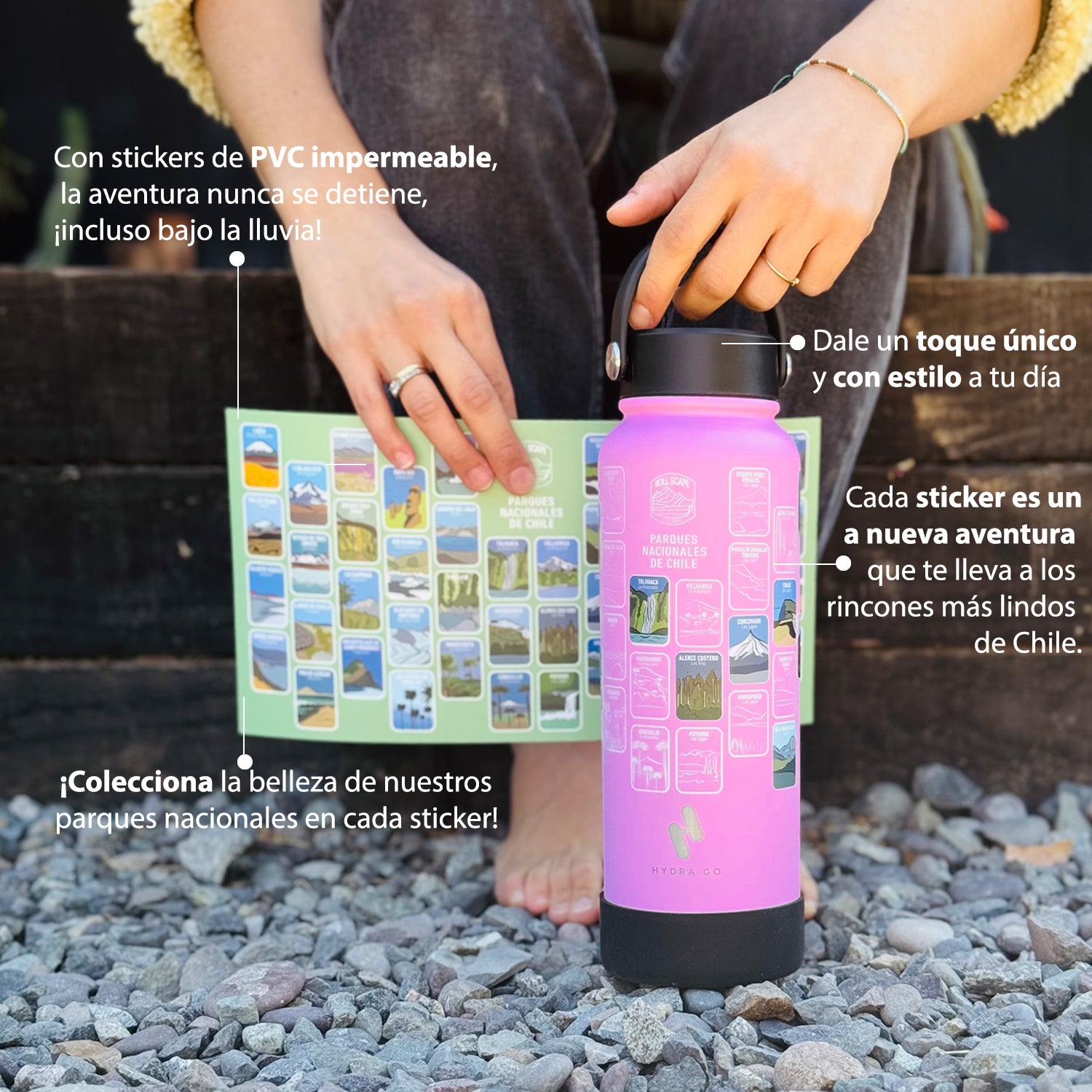 En casi cualquier superficie lisa: botellas, termos, notebooks, cascos, autos, ventanas, tablas… ¡Donde te acompañe la aventura!