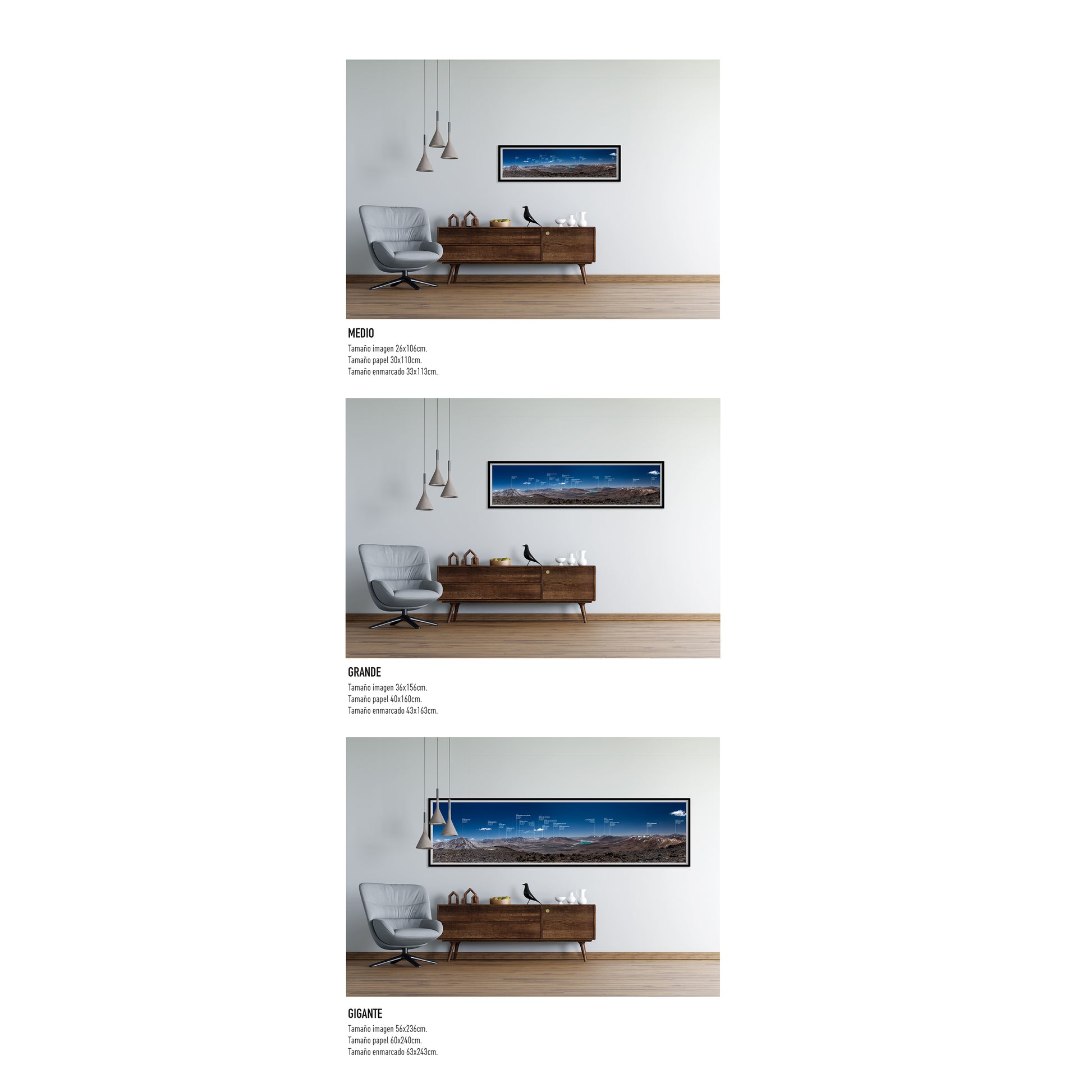 • Gigante — Tamaño imagen 56x236cm; Tamaño papel 60x240cm; Tamaño enmarcado 63x243cm