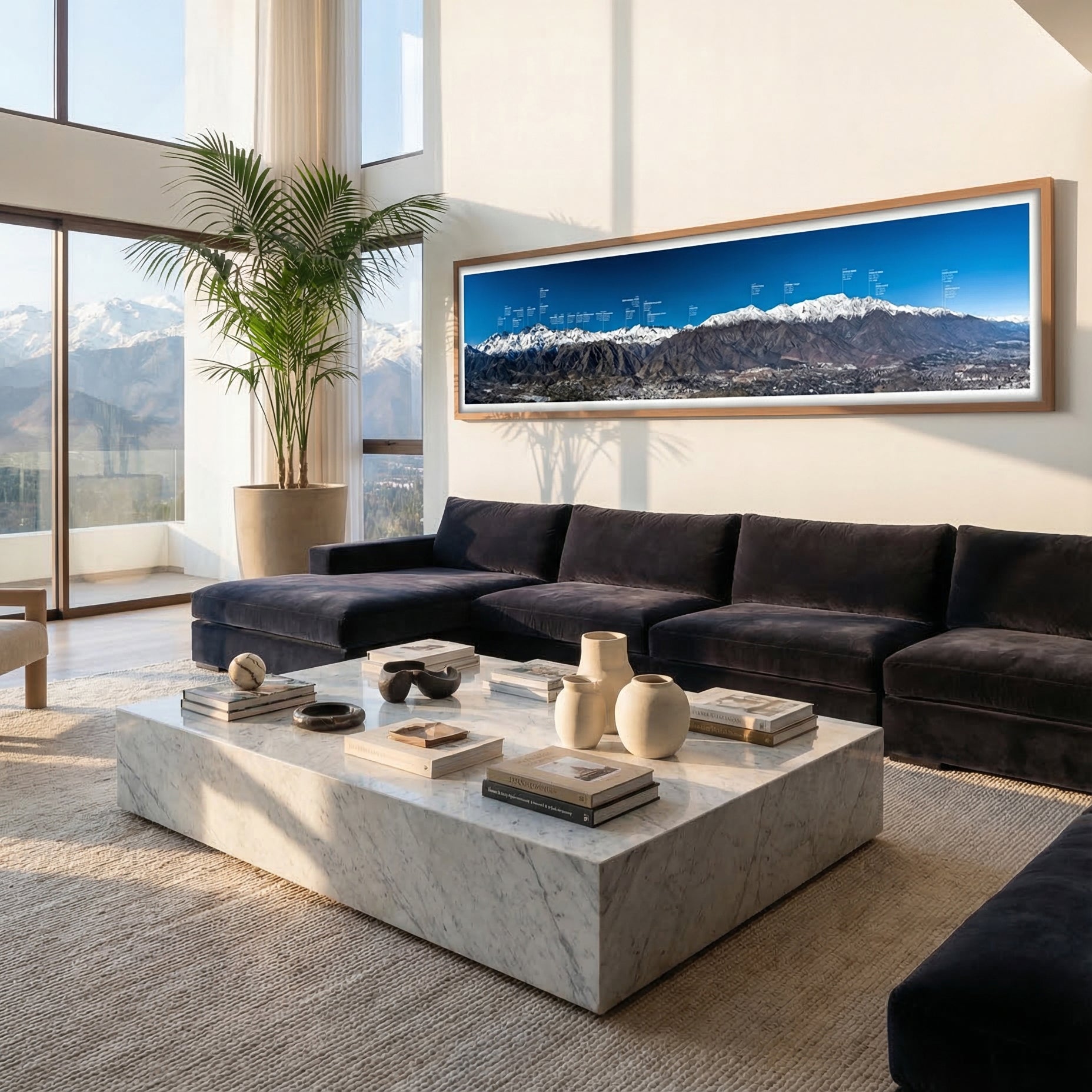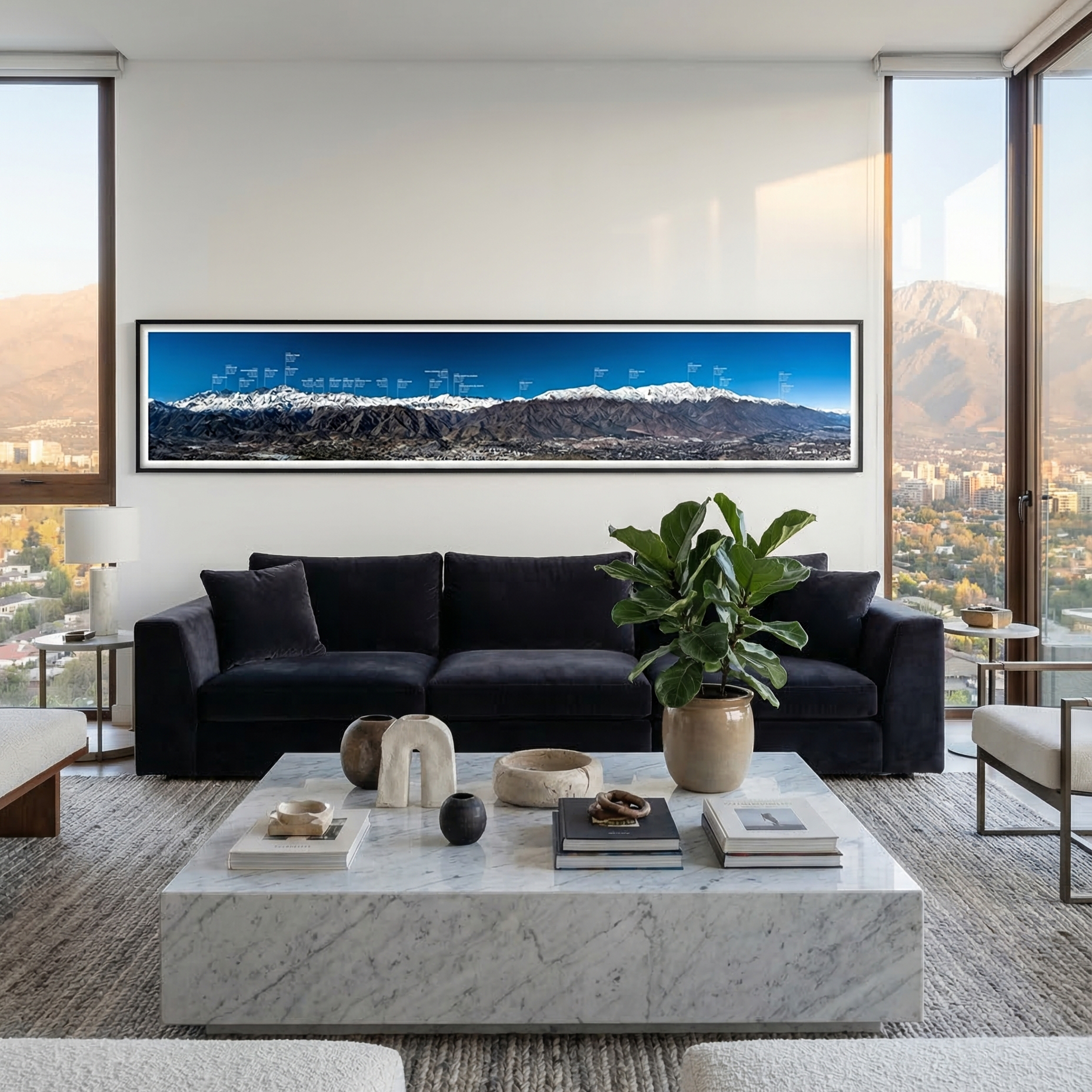 Pero no es solo una fotografía. Es un mapa hecho imagen. Cada cumbre identificada con su nombre, su altitud, su ubicación exacta. La cordillera que llevas toda la vida mirando, finalmente explicada.